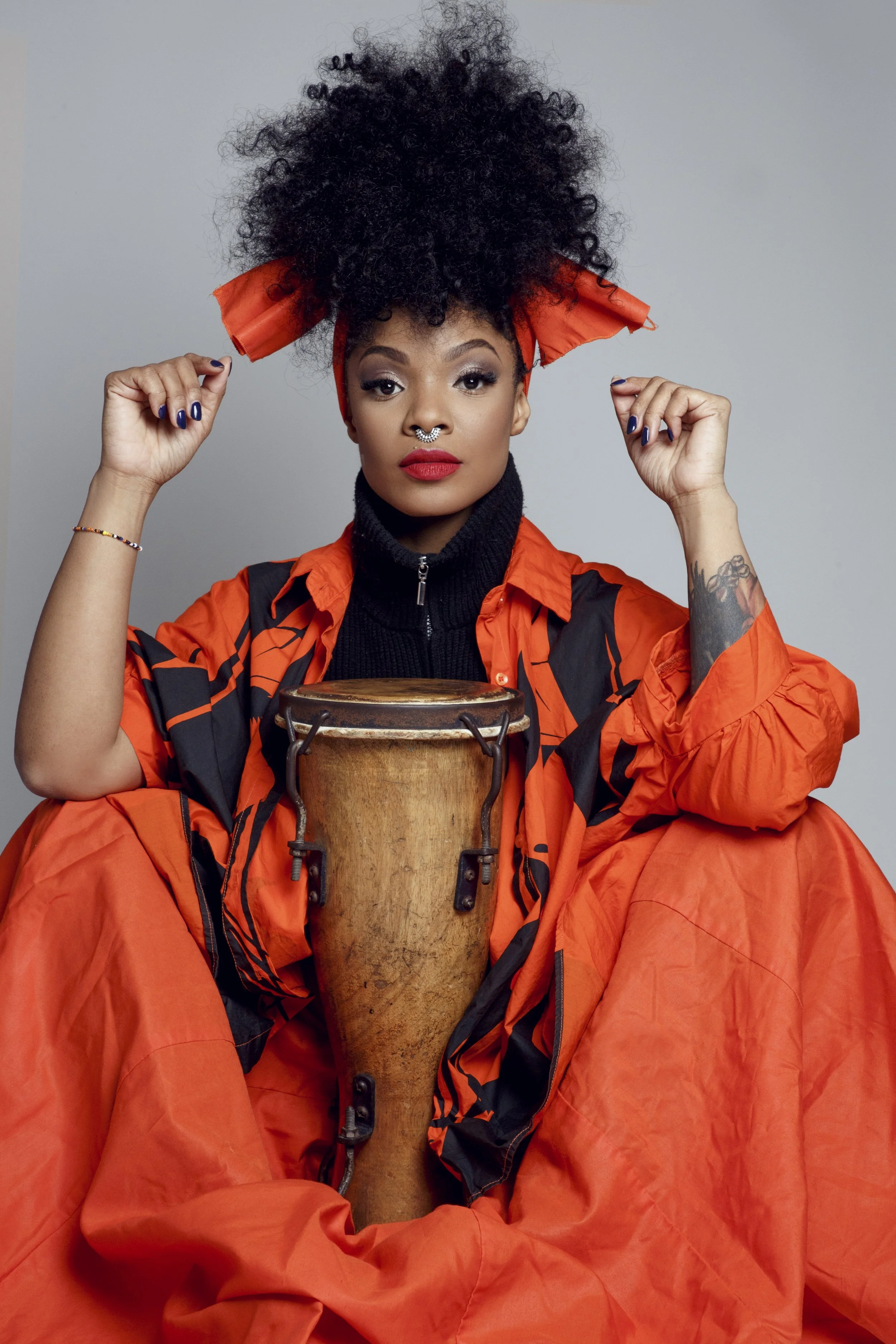 Brenda Navarrete is a musician, singer, percussionist, and educator with a remarkable career in Afro-Cuban music. Renowned as one of the few women to master the batá drums, her work blends tradition, innovation, and a deeply spiritual approach.